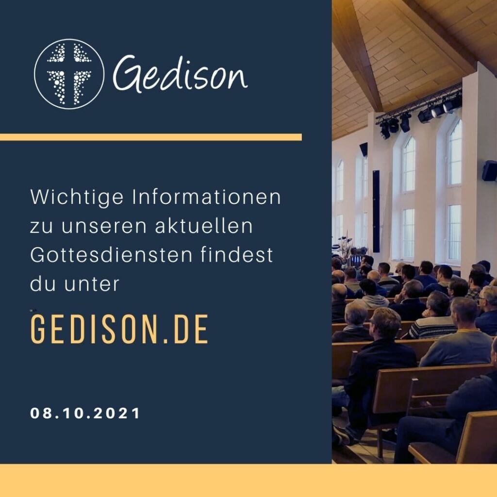 Aufgrund der verschärften Coronaverordnung müssen wir uns als Gemeinde wieder neu organisieren. Am Sonntag, 10. Oktober 2021 finden deshalb wieder zwei Gottesdienste statt. Wir starten um 9 Uhr mit dem ersten Gottesdienst. Der darauffolgende 11 Uhr-Gottesdienst wird live übertragen. Außerdem findet parallel die Kinderstunde statt. Hier geht es zum Live-Stream.